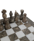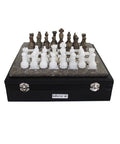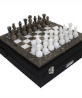Luxury Handmade Gray & White Marble Chess Set with Leather Case, 30cm, Italian