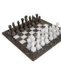 • Pieces: 32 hand-carved marble chess pieces in matching grey and white