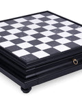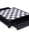 Luxury Handmade Marble Top Wooden Chess Board with Storage Drawer, 60cm, Italy