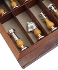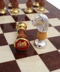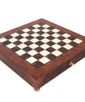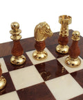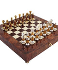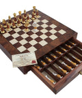 Luxury Italian Handmade Brass & Wood Chess Set, Elm Board Drawer