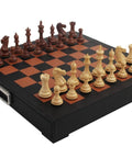 Luxury Mahogany Chess Set, Real Leather Board, Drawer Storage, Made in Italy