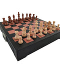 Luxury Wooden Chess Set, Leather Board & Drawer, Weighted Pieces, Handmade Italy