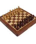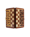 Compact magnetic wooden chess set designed for travel and everyday play. Handmade craftsmanship and a folding wooden board ensure durability, portability, and a classic chess experience.