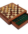 Magnetic Wooden Chess Set with Drawer, 25x25cm Travel Board, Handmade in Italy