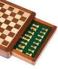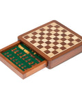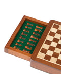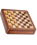 Magnetic Wooden Chess Set with Drawer + Checkers, 19.5cm Travel Handmade