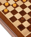 The magnetic chess pieces stay in place during play, making this travel chess set reliable on the go. The compact 19.5 cm chess board saves space while maintaining comfortable gameplay, and the wooden drawer keeps all components neatly stored. The addition of checkers increases versatility, offering two classic games in one set.