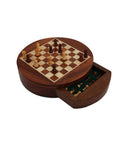 Magnetic Wooden Travel Chess Set, Round Handmade Board 16cm with Drawer, Italian