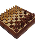 - Included: Wooden magnetic chess pieces, wooden checkers, folding wooden board/box