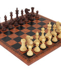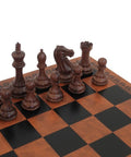 Mahogany Chess Set with Faux Leather Board, Handmade Weighted Pieces, Italy