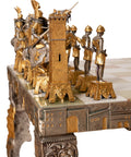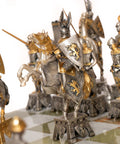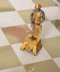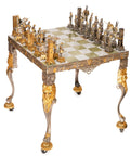 Medieval 24K Gold-Plated Bronze Chess Set with Onyx Table, Handmade Italy Custom