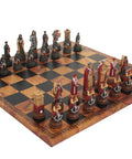 Ideal for enthusiasts, collectors, and anyone seeking a distinctive decorative chess set with hand-painted resin chess pieces and a faux leather chess board.