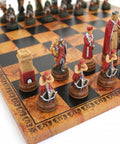 Medieval Camelot Chess Set: Hand-Painted Resin & Faux Leather Board, Italy