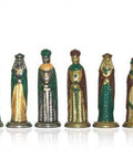 Hand-painted metal chess figures inspired by the medieval era, crafted with detailed finishes for a refined look and durable feel. Each piece features a carefully applied painted surface that highlights sculptural details and adds character to a display or game setting. Italian craftsmanship ensures consistent quality and a balanced weight in hand.