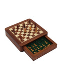 Mini Magnetic Solid Wood Chess Set with Drawer Board Travel Made in Italy 13.5cm