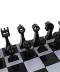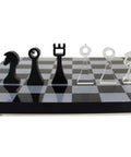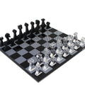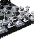 • Pieces: Black and transparent acrylic chess pieces for bold visual clarity