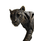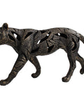 A contemporary sculpture featuring a sleek panther silhouette with fluid lines and a bronze-toned finish. Crafted from high-quality resin and meticulously hand-finished, each piece presents unique detailing and a refined, modern aesthetic for living rooms, offices, shelves, and entryways.