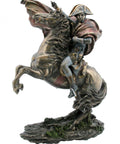 This finely crafted sculpture depicts the famed French leader mounted on horseback, capturing dynamic movement and historical character for refined home or office decor. A classic bronze-tone finish over durable resin highlights intricate details, making it a distinctive collectible for history enthusiasts and art lovers.