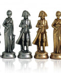 Elevate your game with finely crafted historical metal chess pieces inspired by Napoleon-era design. Each piece is hand-finished for crisp detail and plated in contrasting gold and silver tones for a distinguished, timeless look.