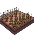 Elevate your game nights with a luxury historical chess set that combines craftsmanship, materials, and versatility. This elegant ensemble features finely detailed metal pieces with gold and silver plating, paired with a handmade artificial leather board in rich gold and burgundy tones. Designed for flexibility, the set includes components for chess, checkers, and backgammon, with integrated storage to keep every piece organized.