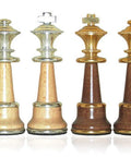 Oversized Brass & Wood Chess Pieces Set, Handcrafted, Gold/Silver Plated, Italy