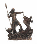 Poseidon on Sea Dragon Statue, Bronze Resin, 24cm Greek God Decor, Italy