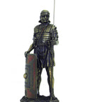 Roman Soldier Statue with Shield - Bronze Resin Figurine, 36cm, Italian Made