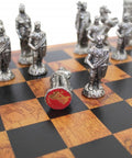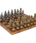 Roman vs Barbarian Metal Chess Set with Faux Leather Board, Made in Italy