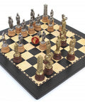 Romans vs Barbarians Chess Set, Metal & Wood Pieces, 40cm Wooden Board Handmade