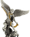 A finely crafted figurine depicting Saint Michael the Archangel, made from high-quality pewter and hand-decorated for a unique character. Its compact size makes it ideal for a home altar, shelf, desk, or display cabinet, adding a refined touch to religious decor. A thoughtful choice for a Catholic gift, saint statue collection, or elegant home accent.
