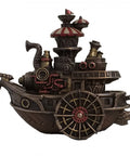 Steampunk Bronze Steamship Statue, Resin, Hand-Finished, 21x11x18 cm, Italy