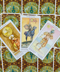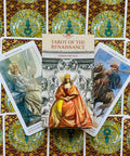 The spirit of the Renaissance is diffused in these cards: life in castles and noble palaces, the poetry of refined courts, the hard work of common people in homes and along the roads. The glory of the knights, the intrigues of the nobles and the quarrels of the people, the spiritual anxieties of the mystics, the longing for knowledge by magicians and alchemists: all are relived in the Tarot of the Renaissance.Included: 78 cards.Cards size: 6.6 x 12 cm (2.6" x 4.7"). Weight of the deck: 250 g. (approx).Includes instruction booklet (in English).Plastic coated paper playing cards.New, sealed. Made in China.100% authentic, original product.