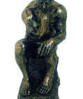 Finely crafted art statuette featuring a bronze-tone finish and meticulous hand detailing, inspired by the renowned sculpture by French artist Auguste Rodin. This piece captures the contemplative pose associated with intellectual reflection and makes a refined addition to any interior.