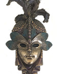 Venetian Mask Decor, Bronze Resin, Handmade Italian Wall Art, 14x30cm Gift