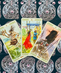The classical iconography of the Tarot is reinterpreted in this deck through the mythology of the Vikings, the people of the North. They were voyagers, colonisers and warriors, heroic people whose destiny was guided by Odin and marked by the Runes, awaiting the inevitable Ragnarock. These cards enable personal exploration of symbolic dimensions.Included: 78 cards.Cards size: 6.6 x 12 cm (2.6" x 4.7"). Weight of the deck: 250 g. (approx).Includes instruction booklet (in English).Plastic coated paper playing cards.New, sealed. Made in China.100% authentic, original product.