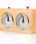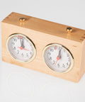 A classic wooden analog chess clock with elegant gold-tone details, designed for precise timekeeping during competitive and casual play. The dual analog displays allow each player’s time to be tracked separately, helping ensure a fair and organized game flow. Clear, easy-to-read dials provide quick visibility at a glance, while the compact footprint fits neatly beside your chessboard.