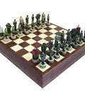 World War II Chess Set, Handcrafted Resin, Walnut Maple Board with Storage